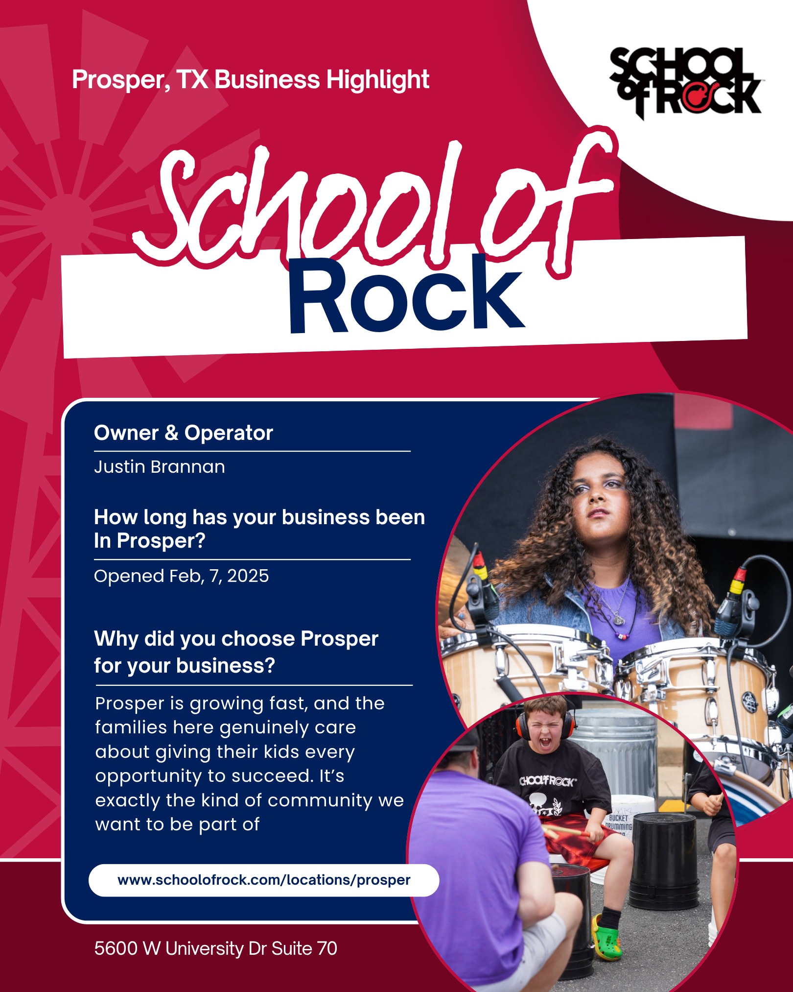 “Prosper’s incredible growth and strong focus on family made it an easy choice. The community’s dedication to nurturing their children’s futures aligns perfectly with what we do every day at School of Rock.”